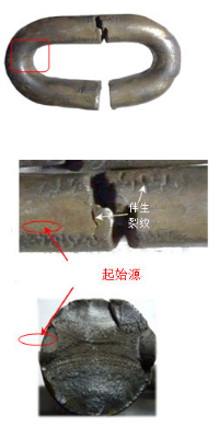 c. 鏈環(huán)斷口附近有時可見伴生裂紋。 如右圖所示: