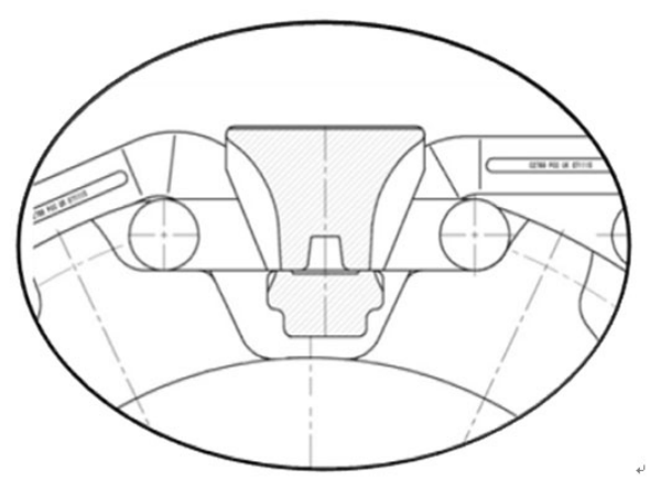 e. 第一次發(fā)現(xiàn)刮板下鏈環(huán)在直臂特別是焊接處斷裂時應(yīng)給予足夠重視,這往往是過載彎曲疲勞的前兆,此時應(yīng)重點檢查橫梁是否存在頻繁斷裂未被更換的情況;檢查橫梁、鏈環(huán)與鏈輪的嚙合情況;檢查鏈輪是否有異常磨損;檢查橫梁與鏈輪底面、輪齒側(cè)面間隙是否過小(見下圖);檢查是否存在跳輪、打滑以及橫梁是否被鏈輪架起等現(xiàn)象,一旦發(fā)現(xiàn)上述情況應(yīng)及時更換新橫梁或新鏈輪。若無法找到確切原因,可將全部刮板錯移一個或兩個鏈環(huán)后觀察一段時間。