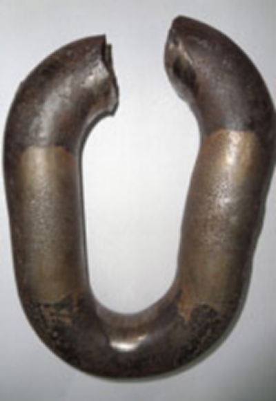 b. 斷裂位置均為鏈環(huán)直臂處, 多為焊接側(cè)直臂。如右圖 紅框區(qū)域所示: